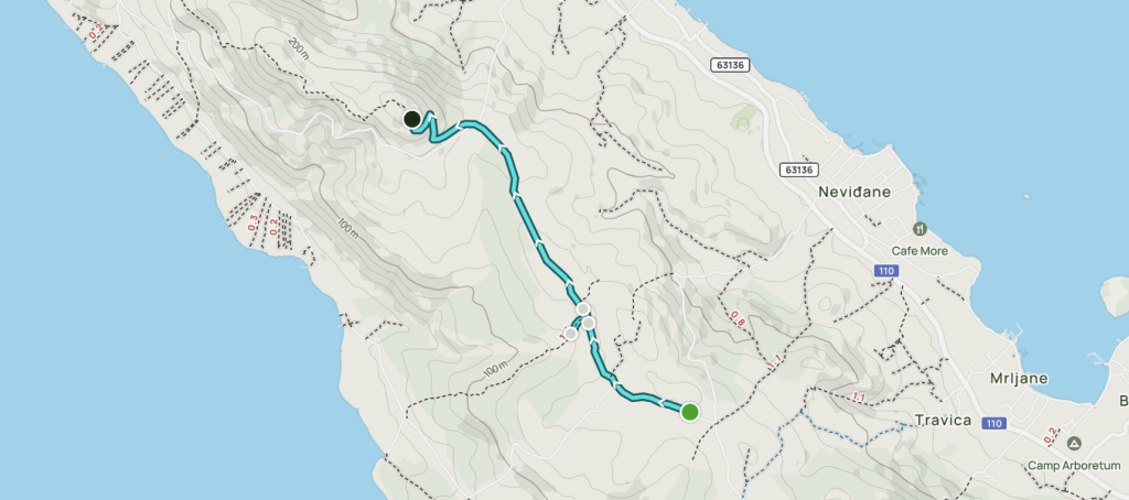 Staza je kombinacija makadama te asfalta na finalnom usponu. Prikladna je za sve koji žele prošetati ili protrčati s manje napora, a cijelo vrijeme uživati u predivnim pogledima budući je cijela trasa na vršnom dijelu otoka.